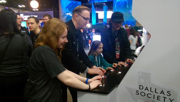 I spent most of Saturday helping with the Society of Play Arcade that Microsoft graciously hosted in their booth as part of a Texas indie showcase. For those that don’t know, the Dallas Society of Play is a fairly new indie gamedev collective here in Dallas – an effort to grow and strengthen the local community with regular meetups and other efforts. Russel built the arcade cabinet and we welcome any games made in the Dallas area – most of the games currently on the cabinet are from a 48h game jam we held for it back in mid 2014 (one notable exception being Stardust Vanguards).