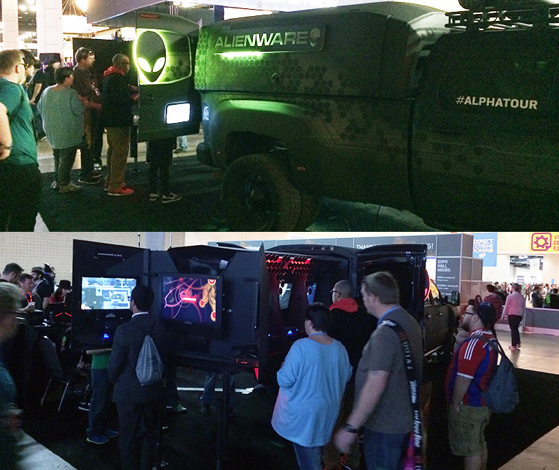 After seeing Alienware’s truck setup, I joked about retrofitting a food truck with PCs so I could park outside events. But I think a more promising solution might be to do something like the Indie Megabooth, but specifically for networked multiplayer indie games. So we’d get a bigger booth in order to have ~10 computers but split the costs. Instead of displaying different games on the different computers, each game would take turns using all the computers. So people would come back to the booth throughout the day in order to play the different games that are on rotation.